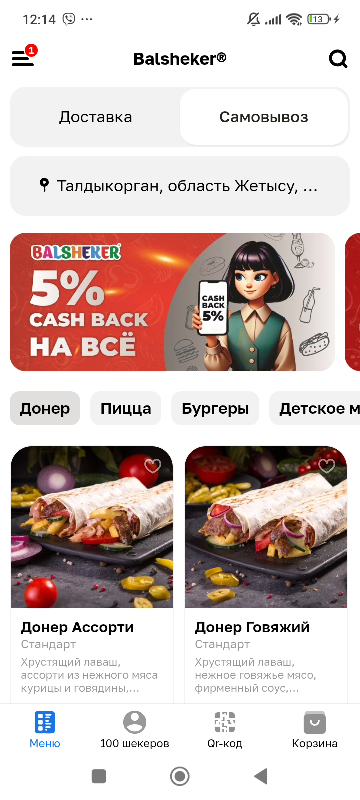 Донер Ассорти стандарт + Фри картофель стандарт + Coca-Cola 0,5л. * экономия 250 тенге